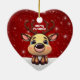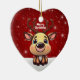 Celebrate the holiday season with this red festive oval ceramic ornament featuring an endearing woodland forest animal cartoon graphic of a cute baby deer with poinsettia flowers tucked in the fawn's ear, and Merry Christmas written in white. Perfect for decorating your tree or as a thoughtful gift, this whimsical floral doe decor makes a cherished keepsake for years to come. Customize by changing the text, the font, the font color, or remove the text. You can even transfer this design onto other products. Enjoy this design your way! Check out ForestBabies Xmas Deer Collection for matching decorations. 🎄🦌