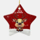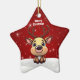 Celebrate the holiday season with this red festive oval ceramic ornament featuring an endearing woodland forest animal cartoon graphic of a cute baby deer with poinsettia flowers tucked in the fawn's ear, and Merry Christmas written in white. Perfect for decorating your tree or as a thoughtful gift, this whimsical floral doe decor makes a cherished keepsake for years to come. Customize by changing the text, the font, the font color, or remove the text. You can even transfer this design onto other products. Enjoy this design your way! Check out ForestBabies Xmas Deer Collection for matching decorations. 🎄🦌