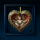 A heart-shaped keepsake adorned with golden florals and the radiant image of Baby Jesus, the Divine Child. A symbol of love and blessing, perfect for adorning your hearth or gifting as a token of faith and warmth.