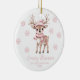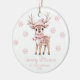 Adorno De Cerámica Babys 1st Christmas Photo Pink Snowflakes Woodland