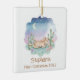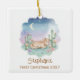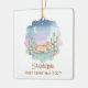 Celebrate a precious milestone with this adorable Baby's First Christmas ornament. Featuring a sweet watercolor desert pony sleeping peacefully amongst cacti under a starry night sky, it's a charming keepsake. Personalize it with the baby's name and the year for a truly special memento of their first holiday season. This ornament is perfect for new parents, grandparents, or as a thoughtful baby shower gift.