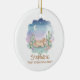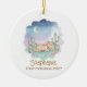 Celebrate a precious milestone with this adorable Baby's First Christmas ornament. Featuring a sweet watercolor desert pony sleeping peacefully amongst cacti under a starry night sky, it's a charming keepsake. Personalize it with the baby's name and the year for a truly special memento of their first holiday season. This ornament is perfect for new parents, grandparents, or as a thoughtful baby shower gift.