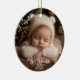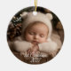 Celebrate a baby's precious first Christmas with this adorable ornament. Featuring a personal photo and date, it's a timeless keepsake for new parents and families. The soft, elegant aesthetic complements any festive decor, marking a cherished milestone.