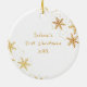 Adorno De Cerámica Babys primera Navidad White Gold Copos de nieve fo