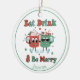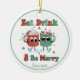 Regale este adorno navideño personalizado que tiene el divertido mensaje de "comer, beber y estar alegre". Este adorno es ideal para las vacaciones, y hace un gran regalo de Navidades. Añadir nombre o apellido .
