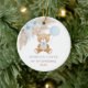 Este adorable adorno navideño muestra un lindo oso de peluche sosteniendo un polvoriento globo azul. En él se exponen algunos elementos bohemios de moda en tonos marrón, azul y crema. Personalice el ornamento con los detalles de su bebé y, si desea reorganizar el estilo y la ubicación del texto, pulse el botón "Haga clic para más personalizares".