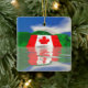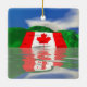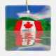 Ornamento con mi imagen original de una gigantesca bandera canadiense sobre colinas verdes, reflejada en el lago.