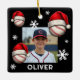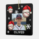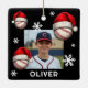 Baseball Ball Santa Hat Name Photo Christmas Ceramic Ornament. Fun baseball ball with a red Santa hat, custom name and a photo. Featuring festive baseball design wearing Santa hat, these customizable ornament brings sporty cheer to your tree and gift list.