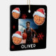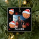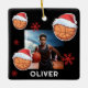 Basketball Ball Santa Hat Name Photo Christmas Ceramic Ornament. Fun basketball ball with a red Santa hat, custom name and a photo. Featuring festive basketball design wearing Santa hat, these customizable ornament brings sporty cheer to your tree, wrapping, and gift list.