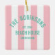 Celebra la temporada de vacaciones con un toque de encanto costero a través de nuestro Beach House Custom Name Pink Cabana Stripe Ceramic Christmas Ornament. Este adorno de bonito diseño combina la calidez de la vida en la playa con la alegría festiva, convirtiéndolo en el lugar perfecto para su casa de playa o en un regalo personalizado para sus seres queridos. Personalizar con el nombre de su familia, fecha establecida y ubicación de la casa de playa, haciendo cada ornamento único y memorable. Es una hermosa mezcla de encanto costero y tradición festiva, perfecta para crear recuerdos de vacaciones duraderos. Accesorios de juego disponibles en Family Beach House Pink Cabana Stripe Collection.