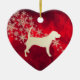 Este único adorno navideño hará un maravilloso regalo para quien ame un Beagle! Cuenta con una silueta dorada de Akita Dog, imagen frente a un rociado de copos de nieve dorados ornamentados. La imagen se coloca sobre un fondo rojo Navidad profundo degradado. La parte posterior del ornamento tiene el mismo fondo rojo y copos de nieve dorados, y un campo de texto para personalizar.