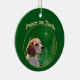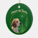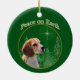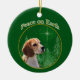 Paz en la Tierra. Muestra tu razón para la temporada con tu Beagle en este diseño único de perro acentuado con verde y oro. Es genial en un adorno, tarjeta de saludo o pegatina.