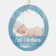 Este adorable ornamento navideño presenta copos de nieve alrededor de su bebé. Haga clic en el botón "personalizar" si desea reorganizar y formatear el estilo y la ubicación del texto.