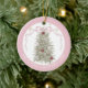 Celebra un hito que atesorarás para siempre con este dulce Ornamento de Navidad del Bebé. Diseñado con un suave borde rosa y delicados detalles de acuarela, un lado presenta un árbol navideño festivo coronado por un arco de cinta y personalizado con el nombre y el año de su bebé. En el reverso se muestra tu foto favorita, enmarcada con adornos, vegetación y arcos a juego. Captura la magia de la primera temporada de vacaciones de tu pequeño con un adorno personalizado que se encenderá en tu árbol año tras año.