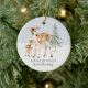 Celebre la alegría de una nueva llegada con este adorno navideño personalizable que presenta una hermosa ilustración de acuarela de una cierva y un cervatillo con un sencillo árbol de hoja perenne sobre un fondo de nieve recién caída. La parte delantera del adorno presenta texto personalizable que dice "Ciervo bebé en camino", mientras que la parte trasera ofrece espacio para agregar una foto, junto con el nombre del bebé y la fecha de nacimiento, para crear un recuerdo verdaderamente único. Este adorno será un regalo considerado que será atesorado durante años, convirtiéndose en una parte querida de las tradiciones navideñas de su familia.