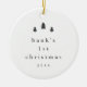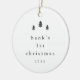 Un moderno ornamento simple de fotos del árbol de Navidad del bebé primero con un tipo minimalista en la parte delantera, con foto en blanco y negro y del recién nacido en la parte posterior. Haga clic en el botón de edición para personalizar este diseño con sus detalles y fotos.