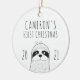 Conmemorar la primera Navidad del bebé con este adorable adorno de keepsake, con un sencillo y moderno dibujo en blanco y negro de una pereza. Personalízalo con el nombre del bebé y el año en letra de impresión a mano.