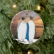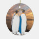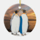 Este adorno de árbol de cerámica haría un regalo encantador para una pareja. Presenta una pareja de pingüinos Rey con sus picos juntos como besándose, contra un fondo ártico y puesta de sol. Perfecto como regalo de aniversario o regalo de Navidad.