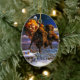 Adorno De Cerámica Bison Pulling Santa Claus
