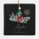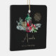Celebre la temporada con este adorno de cerámica que presenta el diseño de los farolillos con un fondo negro nevado. El follaje acuático y el copo de nieve dorado evocan el encanto del patrón de Navidades escandinavos nórdicos y la calidez del fiesta blanco y rojo de Navidad. Ideal para regalar, conmemorar un año especial o añadir un toque festivo a su árbol. Personalizar el texto para incluir nombres, fechas o un mensaje corto.