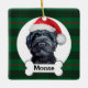 This Black doodle dog with santa hat ornament is a great gift! The green plaid background matches all holiday decor. The doodle was hand painted by me and made available as this adorable ornament! Customize the text to personalize the gift.