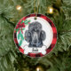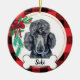 Black Poodle ornament with red buffalo background and Christmas garland and bow - Art was hand painted by me and made available as this adorable ornament! Add any text (suggested: "I ❤️ my Poodle" or your sweeties name)