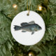 Este adorno de pesca de agua salada de aguas profundas cuenta con un ilustracion de lubina negra de estilo vintage. La lubina negra se encuentra a lo largo de la costa atlántica, desde Nueva Inglaterra hasta las Carolinas. La lubina negra es apreciada por sus filetes blancos de degustación suave.