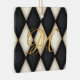 This charming monogrammed ornament has black and white harlequin checks in black and antique white. Customize it with a monogram and a your message or inscription.