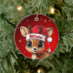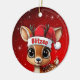 Blitzen! Celebrate the holiday season with this festive round ceramic red ornament featuring an endearing woodland forest animal cartoon graphic of a cute baby reindeer wearing a Santa hat. Perfect deer with antlers for decorating your tree or as a thoughtful gift, this whimsical doe decor makes a cherished keepsake for years to come. Customize by changing the text, the font, the font color, or remove the text. You can even transfer this design onto other products. Enjoy this design your way! Check out ForestBabies Xmas Deer Collection for matching decorations. 🎄🦌