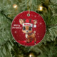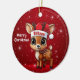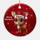 Blitzen! Celebrate the holiday season with this festive round ceramic red ornament featuring an endearing woodland forest animal cartoon graphic of a cute baby reindeer wearing a Santa hat, and Merry Christmas written in white. Perfect deer with antlers for decorating your tree or as a thoughtful gift, this whimsical doe decor makes a cherished keepsake for years to come. Customize by changing the text, the font, the font color, or remove the text. You can even transfer this design onto other products. Enjoy this design your way! Check out ForestBabies Xmas Deer Collection for matching decorations. 🎄🦌