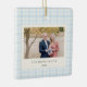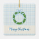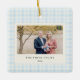 Adorno De Cerámica Blue Bow Wreath Gingham Photo Christmas