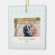 Celebrate the season with this charming Blue Bow Wreath Photo Ornament, featuring a classic blue gingham pattern and a beautifully illustrated wreath tied with a soft blue ribbon. Add your family photo to create a timeless, preppy grandmillennial keepsake perfect for your tree or for gifting to loved ones.