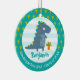 This personalized photo ornament is a wonderful keepsake for your favorite kindergarten grad or their family members. The front boasts a whimsical and playful visual of a cute, bold, kawaii, navy blue t-rex, and fun, handwritten typography over a light turquoise blue and white striped background. An adorable palm tree pattern overlaying turquoise blue is on the rim, framing the illustration. On the back is the photo of your choice. Personalize the custom text with your grad’s name and class year. Personalize the custom text with your graduate’s name and special message. Choice of ceramic, metal, glass or premium metal frame materials and a circle or square shape. Matching invites, banners, paper plates and napkins, stickers and other graduation goodies are also available in this cool and special collection. Guaranteed to preserve cherished memories of this special occasion!