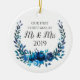Adorno De Cerámica Blue Peonies Primera Navidad como Sr. y Sra.