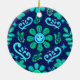 Adorno De Cerámica Blue Retro Style Floral and Sun Symbol Pattern
