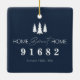Blue White Home Sweet Home Photo Zip Code Ornament Cerámica. Este adorno es una hermosa manera de conmemorar tu hogar y crear recuerdos duraderos. Personalice la plantilla para incluir su código postal, ciudad, estado y año, convirtiéndolo de forma única en el suyo. Además, tiene la opción de editar todos los colores del texto + elementos de diseño para que coincidan con su estilo personal o decoración de vacaciones. © Kimbellished, LLC