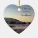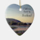 Esta hermosa escena de Escocia muestra un lago, árboles y colinas. Los colores bonitos escoceses se aprecian en los verdes mullidos, el azul turbio y el violeta. Este adorno en forma de corazón puede ser totalmente personalizado, lo que lo convierte en un recuerdo perfecto de Escocia. Simplemente agrega tu propio texto al reverso del adorno para crear un conservador escocés único para recordarte tu tiempo en Escocia bonificada o como regalo para alguien que ama esta tierra. También puedes reemplazar el lema de 'dejé mi corazón en Escocia' en el frente con tu propia elección de palabras o borrar por una foto solamente. El color del reverso del adorno es personalizable: seleccione su elección en la paleta de colores de Zazzle.