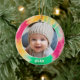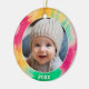 Añade un cuadro a esta bonita decoración de vacaciones, perfecta para los niños. Un divertido y colorido borde de acento de tintes de corbata hace un adorno memorable para tu árbol. Una moderna letra mínima para el año con un lugar para subir una foto cuadrada.