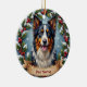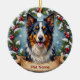 A beautiful, ultra-detailed Christmas design featuring a realistic portrait of the breed centered within a soft, festive winter frame. This elegant design includes pine branches, red berries, and snowflakes against a snowy backdrop, illuminated by warm holiday lighting. The balanced, round composition includes clear space below the dog for customization.