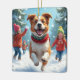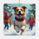 Adorno De Cerámica Border Terrier Snowball Fight Christmas Painting