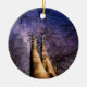 Este diseño presenta una hermosa imagen de dos grandes árboles que suben al cielo, rodeados por otros árboles en un bosque. La escena se organiza por la noche, cuando todo parece particularmente mágico y encantador. Hay una bandada de pájaros volando. El cielo está formado por una bonita mezcla de morado y azul, salpicado de brillantes estrellas blancas.