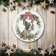 Este adorno de bonito Holiday cuenta con un hermoso retrato acuático de un adorable perro Boston Terrier blanco y negro. El perro está enmarcado con una corona hueca y bayas rojas, con un brillante arco rojo en la parte superior. La parte posterior del ornamento tiene la misma corona de arco rojo, con dos campos de texto para su personalizar. Asegúrese de ver los otros productos de Boston Terrier en nuestra tienda.