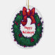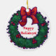 Felices fiestas! El navidad Holly Wreath Ornament presenta nuestro arte original de una corona hueca con bayas rojas y un arco rojo pintado digitalmente por nuestro talentoso artista Traci Van Wagoner. Dentro de la corona están las palabras de personalizable en rojo, ¡Felices Fiestas! Nuestros coloridos boughs de diseño holístico son una forma perfecta de decorar para las vacaciones.