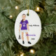 Adorno De Cerámica Brunette Lacrosse Player En Púrpura Y Blanco