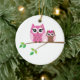 Los búhos lindos se están sentando en el ornamento de cerámica del árbol de navidad de la rama de árbol.