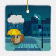 Adorno De Cerámica Búho lindo con paraguas en el día de lluvias