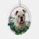 Adorno De Cerámica Bulldog blanco inglés Wreath Evergreen