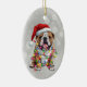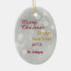 En la parte delantera de este adorno navideño se ve una imagen de un Bulldog marrón y blanco con un sombrero de Santa y un foco de Navidades de colores. La imagen está puesta en un fondo festivo de bokeh de plata. El dorso del adorno tiene el mismo trasfondo con un texto personalizado que actualmente dice "Feliz Navidad feliz Año Nuevo", la fecha y tu firma. Es muy agradable para cualquiera, pero sobre todo para los aficionados al Bulldog.