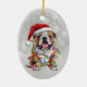 Adorno De Cerámica Bulldog envuelto en luces de Navidades