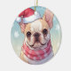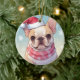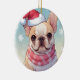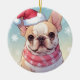 Decore su árbol de Navidad con este Bulldog francés con gorra pastel y bufanda, adorno de Navidad con cerámica de copo de nieve.